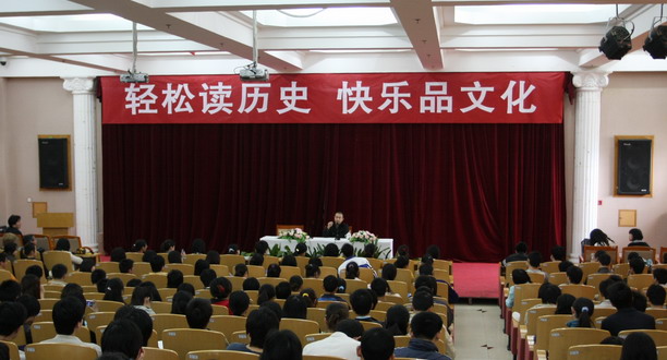 一开场,今波就以“民主选举”的方式选择了大家一致认可的清晰话筒,之后更是不时地与台下听众互动,“什么是道”、“谁能背诵历史朝代”、“历史水平怎样”等等,甚至还认起了“老乡”,我们水大的同学们也是热烈回应,一个女同学更是流畅地背出了所有历史朝代,引得今波连声敬佩。整个讲座围绕着“轻松读历史,快乐品文化”的主题,今波为大家细数了现实与历史、娱乐与教化的关系,并以自己长期从事节目策划主持经验及个人丰富经历为大家讲述了如何读史的个人心得。 讲座在轻松而热烈的氛围中接近尾声,大家深感意犹未尽,纷纷向今波发问,今波的幽默回答引起会场阵阵笑声,我们水大的同学们也被今波评为既有“娱乐记者”的发问,更有“文化记者”的水平。 一个多小时的讲座使得同学们纷纷折服于今波的人格魅力,他深厚的文学功底,大气而不失诙谐的气质形象深深印在大家的脑海里,签名合影的同学蜂拥而上,是对今波的喜爱,也是对中国历史文化的喜爱。