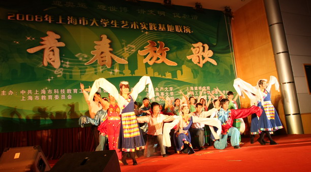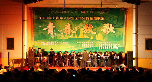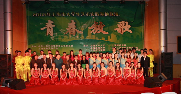 “让我们与祖国同呼吸,共成长!”当水大学子激情澎湃的声音回响在学海路校区600人报告厅时,全场响起了热烈的掌声。4月24日晚,由中共上海市科技教育工作委员会、上海市教育委员会联合主办的“青春放歌”——2008年上海高校校园文化联演南汇大学园区专场在我校隆重举行。来自我校等南汇大学园区六所高校的学子载歌载舞,以管乐、合唱、舞蹈、独唱、武术等多种表演形式艺术地展现了南汇大学生艺术实践的成果及大学生们的青春风采,浓厚了大学校园的文化氛围。
