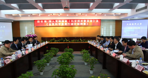 5月14日下午,市科教党委书记李宣海,市科协党组书记孙正心,市科协副主席俞涛,市科委总工程师钮晓鸣,市科教党委副秘书长谢一龙及市科教党委办公室、研究室、科教兴市处,市科委科普处,市科协秘书处,科普部负责人等一行15人到我校,就科普工作进行调研,参观了我校水生生物科技馆、鲸馆,并听取了校领导关于科普工作汇报。校党委书记叶骏,校党委副书记吴嘉敏,校党委副书记、副校长黄晞建等陪同调研。