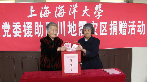 突如其来的四川地震灾难,牵动着亿万人民的心。传承着中华民族 “一方有难、八方支援”和“心连心、手拉手”血脉相连的优良传统,我校离休干部与民主党派人士也纷纷伸出援手,积极捐款。其中,有许多老同志不仅参加了学校的捐款活动,还积极投入到社区的捐款救灾活动中。96岁高龄的老教授骆肇尧先生,在得知四川发生地震的第二天就打电话联系捐款事宜,这次老人一下捐出了2000元,老书记胡友庭、支部委员赵颖熙、郭明、徐筱蓉都前后两次捐款,几天来离休干部们共捐款4870元,表达了他们心系灾区,为灾区人民送去一份关爱的心意。 我校九三社员与全国人民一样,也时刻关注着灾区人民的生存与生活,自觉开展了救灾捐款活动,纷纷为灾区人民献上一份爱心。许多退休老社员也慷慨解囊,表达爱心。活动开展仅两天,就收到爱心捐款5470元。这些爱心善款将迅速、统一交由九三上海市委转交上海红十字委员会进而转寄至灾区。