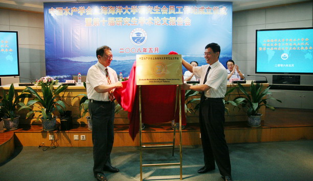 校长潘迎捷教授在致辞中向中国水产学会对我校工作的支持表示感谢,同时希望工作站的成立能够积极发挥研究生的学术优势,引导广大研究生在校期间更多地了解国情,服务社会、在社会实践和科技创新活动中受教育、长才干。曲宇风副秘书长代表中国水产学会向工作站的成立表示热烈祝贺,上海海洋大学研究生会员工作站是中国水产学会在国内高校中成立的第一个“研究生会员工作站”,希望海洋大学的研究生同学们走出校门,服务社会,把聪明的才智与青春激情播洒到社会的每一个角落。在领导和嘉宾为工作站的首批工作人员颁发了聘书后,工作站首任站长肖作为同学表示一定不辜负领导和老师的期望,让工作站真正成为学校和社会之间的纽带。最后校党委书记叶骏教授和曲宇风副秘书长共同为工作站揭牌。