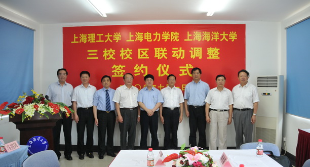 7月1日,我校和上海理工大学、上海电力学院三校校区联动调整签约仪式在我校临港新校区建设指挥部会议室举行,市科教党委书记李宣海,市科教党委副书记、市教委主任薛明扬,市科教党委副书记、市教委副主任、申教公司总经理莫负春,市教委副主任李骏修,市科教党委副巡视员佘国平、副秘书长谢一龙等出席签约仪式。仪式由市教委发展规划处处长马宪国主持。