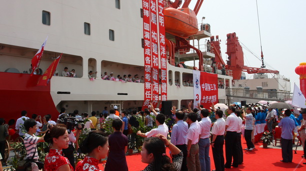 今天上午十一时,随着我国极地考察船"雪龙"号徐徐驶离中国极地考察基地专用码头,中国第三次北极科学考察队展开了为期76天的北极之旅,作为我校代表首次参与北极科考的海洋科学学院刘洪生副教授也随队出征,这是继我校李曰嵩教师首航南极后,我校参与极地科学考察工作取得的又一重要成果,标志着我校海洋科学学科发展进入了一个新的阶段。