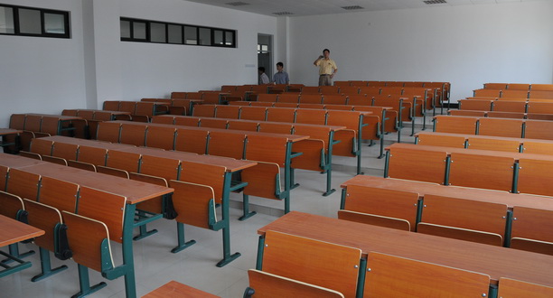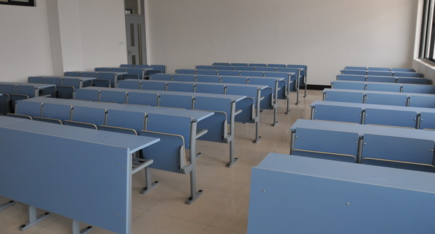 新校区四座教学楼课桌椅共18000余套,包括固定式和活动的两种,按照楼层不同分成各种颜色,功能完备,美观实用。