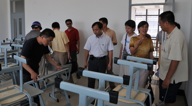7月24日上午,教务处、财务处、实验室与设备管理处、后勤管理处、后勤服务中心和新校区建设办公室、基建处等有关部门领导冒着酷暑前往临港新校区,对公共教学楼课桌椅进行检查验收,他们在楼内对安装好的课桌椅从质量到安装情况都进行了认真检查,确保新学期开学的顺利。