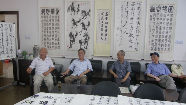 书画社成员聚集一堂,互相切磋技艺,交流创作体会。言谈间,他(她)们深情回忆了改革开放三十年来国家在各个领域所取得的重大成果,热情颂扬了全国人民在党的领导下,高举中国特色社会主义伟大旗帜,坚持中国特色社会主义伟大道路,以中国特色社会主义理论体系为指导所带来的翻天覆地的巨大变化。一幅幅作品宛如一首首诗歌,有情景交融之遐想、有大气磅礴之无畏、有曼妙婀娜之华丽,彰显出创作者的独居匠心和纯朴心灵 深深表达了对祖国未来的美好祝愿。 为了遴选出参加2008年第十一届教师书画篆刻参展作品,墨香斋书画社理事长,90高龄的离休干部陈克先生,从医院赶来参加遴选与推荐工作。陈老先生的忘我精神,让我们敬佩,值得我们大家学习。