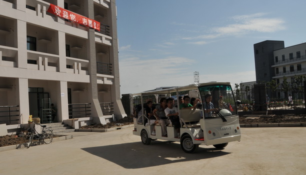 刚刚投入使用的观光电瓶车也投入了志愿者接待中。