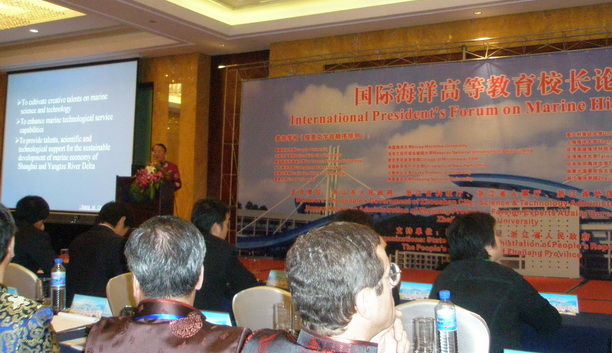 由浙江省科技厅、浙江省人事厅、浙江省外国专家局和舟山市人民政府、浙江海洋学院等单位主办的《国际海洋高等教育论坛》11月1日下午在舟山举行,我校潘迎捷校长应邀出席大会并在大会上作了专题报告。