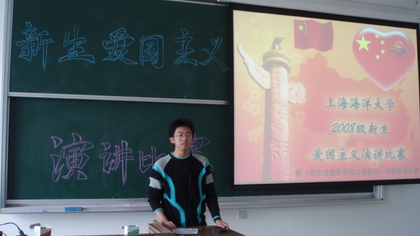 一等奖获得者张梦启同学在演讲。 参赛的学生引经据典,从我国历史上遭受的外来侵略、今年的汶川大地震自然灾害、如今祖国的辉煌成就、身边同学的爱国行为等各个不同的角度,表达了自己的爱国激情,也激发了听众的爱国热情。比赛中,同学们的演讲内容紧扣主题、格调健康向上,或激越高昂、或深情委婉,整场比赛气氛热烈、激情高涨。经过激烈角逐,来自食品学院的张梦启、 经管学院的洪林玉、工程学院的刘舟奇获得一等奖,华钦等5名选手获得二等奖,孙钦等8名选手获得三等奖。 此次演讲比赛使在场的每个同学都得到了一次非常深刻的爱国主义教育。通过本次演讲,学生们更加深刻正确理解了爱国主义的重要性,也更加坚定了践行爱国主义的决心。