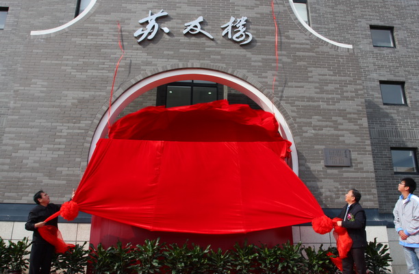 校党委书记叶骏与江苏校友会帅国良副会长共同为“苏友楼”揭幕。