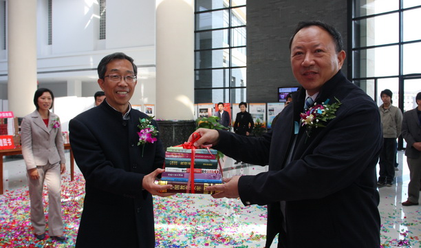 开馆仪式之后,接着举行了图书捐赠仪式。全体校领导、学院部门代表、教师代表、学生代表和图书供应商代表分别上台捐赠。少则几本,多则几箱,大家都积极响应图书馆发出的捐赠倡议,为丰富图书馆馆藏贡献自己的一份力量。