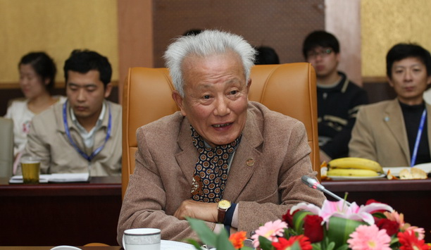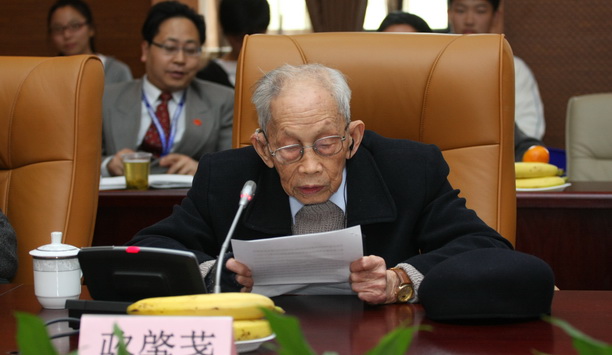 九十六岁高龄的离休校领导骆肇荛先生发言。