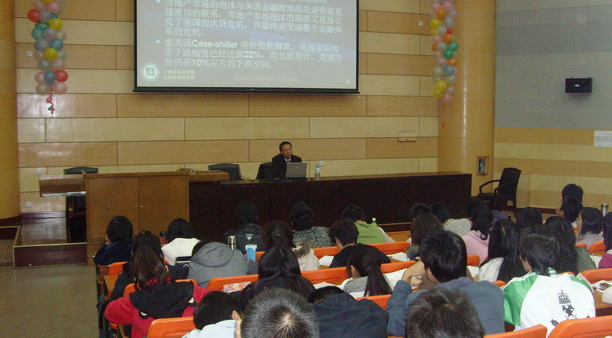 徐教授首先深入地解析了美国爆发此次金融危机的源头:次贷危机。徐教授将什么是次贷危机,次贷危机是怎样产生的作了详细的阐述。徐教授指出金融危机在资本主义生产方式取得统治地位之后就一直伴随着经济周期的轮转而有规律地爆发,而现代中央银行的诞生,降低了金融危机爆发的频率,但是,金融危机并没有消失,它只是降低了对经济的冲击力度,被政府反周期政策和中央银行注资所缓和的周期性调整经过较长时间的积累,最终还是会以一次较大的危机爆发来克服经济内部的失衡和矛盾。 其次,徐教授分析了此次美国金融危机对中国经济的影响:中国的出口面临困难局面,危机心理引起的连锁反应,美元贬值的过程就是人民币面临升值压力的过程,中国金融体系的改革和建设工作应该反思美国的金融模式等,徐教授认为长期来看金融危机削弱了美国的实力,同时也给投资美国资产的人造成很大的损失,影响也不可忽视,如对于上海金融中心的建设的影响在短期内负面效应将扮演主角。 徐教授的报告得到了同学们的热烈欢迎,很多同学站着听完整场报告,报告结束后同学们踊跃提问:从金融危机的爆发美元会不会丧失其主导地位?中国采取的应对措施?金融危机发展到极端会不会引起战争?等等,徐教授一一作答,最后还留下Email地址继续与同学们交流。
