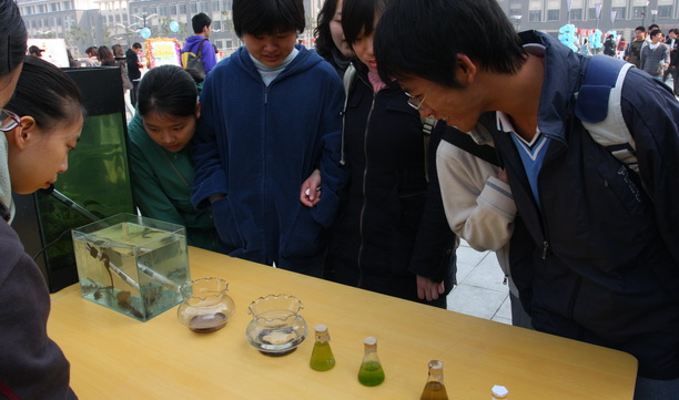 一年一度的鱼文化节活动由校团委主办,水产与生命学院团委、学生会和观赏鱼爱好者协会承办,以“弘扬鱼文化,传播鱼知识,丰富校园生活”为主旨,让同学们在一系列精彩的活动中更好地了解到了海大的新面貌、水产与生命学院的新风采。 开幕式上,黄晞建副书记致开幕辞。他说,我国有着悠久的鱼类养殖历史,而在改革开放的今天,新一代的海大学子更应该以这次鱼文化节为契机,将海大融入社会,推向社会。随后,校领导为王武等9位“鱼文化节优秀指导老师”颁发证书。 在本次鱼文化节活动现场,同学们可以从展览区和互动区参与到活动中来。由学院大一十四个班级布置互动区的展台,用不同的方式展现了“新海大,新鱼乐”这一主题。其中,08环科(1)班别出心裁的绑蟹比赛吸引了众多同学们的参与。与此同时,观赏鱼爱好者协会向社员赠送金鱼与鱼缸并指导养殖方法,吸引了众多同学驻足。而在另一边的展览区,海洋贝类展、水产动物标本展以及名贵海洋鱼类展则以生动的形式开拓了同学们的视野,丰富了大家鱼文化的相关知识。 开幕式系列活动在校园中引起了热烈反响。鱼文化节已不仅仅是我校的品牌活动,更是全校同学自己的节日。在接下来的两周中,鱼文化节也将带给全校同学们更大的惊喜,让我们拭目以待!