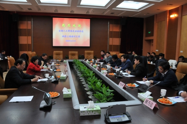 参观完毕后,吴启迪同志在图文信息中心102室与全体校领导、部分学院和部门负责人进行了座谈交流。潘迎捷校长主持了座谈会。会上,吴启迪同志作了讲话。吴启迪同志指出,我校校园建筑有特色,校园风光美丽,富有文化底蕴,极具特色,令人赏心悦目,临港空气清新,适宜生活和学习。吴启迪同志指出,上海海洋大学定位准确,办学特色鲜明,结合自身专业特点,结合上海和全国的经济需求,依托主管部门,脚踏实地,在科研上作出了成绩,为国家和经济社会发展做出了贡献。她还说道,本科教育是立校之本,学校要高度重视本科教学,关键是建立内部评估制度,健全本科教学管理制度,推动更多本科生参与教师科研,促进大学生全面发展,培养社会主义事业的建设者和接班人;要提高科研水平,注重研究生培养,促进学校学科水平整体提高。同时指出,中国的大学虽然只有一百多年的历史,但很值得研究,希望我校能充分挖掘历史和文化资源,增强自信心,增进社会了解,同舟共济,共创辉煌未来。吴启迪同志还就素质教育、大学排名、教育评估等问题提出了自己的看法和建议,并就在座校领导提出的有关问题进行了交流。