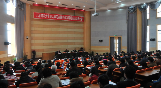 3月10日下午,我校深入学习实践科学发展观活动动员大会在第一教学楼1117室隆重召开,临港校区、军工路校区多个多媒体分会场进行实况转播。以沈学超同志为组长的市教卫党委指导检查组,全体校领导、教师党员、学生党员、离退休党员以及来自学校各方面的群众监督评议代表出席了大会。动员大会由校长潘迎捷主持。