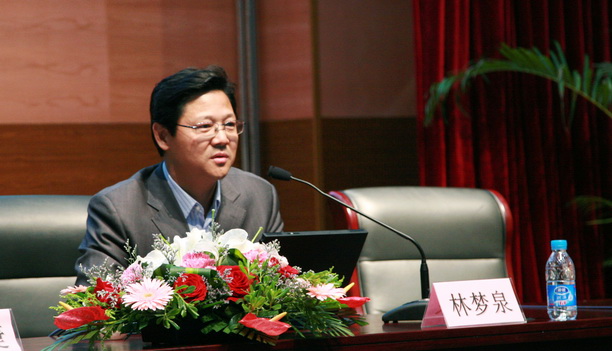 教育部学位中心评估处处长林梦泉博士做主题发言。