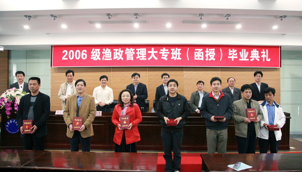4月24日下午2006级渔政管理班在军工路校区培训中心二楼会议室举行了简短而又隆重的毕业典礼。上海海洋大学程裕东副校长,东海渔政分局马毅副局长、顾道良副总队长、人事处李森林处长、法规处张建国处长,上海渔政管理处严宜荣副书记,上海海洋大学成人教育学院成长生院长出席了毕业典礼,毕业典礼由成人教育学院林高书记主持。