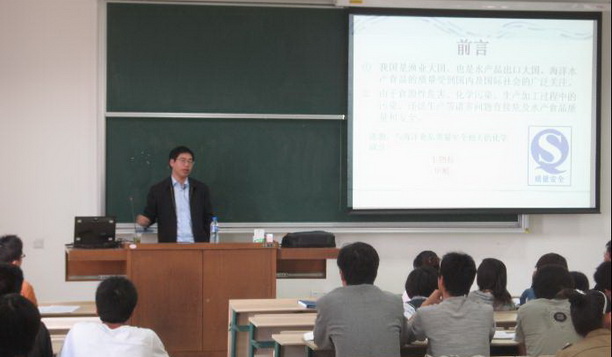 学术讲座期间,薛教授先后以水产品深加工、活性物质提取、分离及应用,冷冻与保鲜加工工艺等为例,对研究生同学如何进行课题选择,怎样做课题研究进行了深入讲解和详细说明,同时也向大家介绍了其正在进行当中的海参课题研究进展。夏文水教授则在对江南大学的基本概况进行介绍之后,详细阐述了食品工业、功能与技术的前沿进展,以及食物多糖的研究状况,通过两位教授的耐心讲解,更加深了研究生同学们对食品这一朝阳产业的理解,大大提升了同学们踏踏实实做好科学研究工作的信心和决心。
