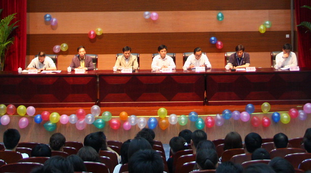 人文学院院长张继平教授首先代表校体育运动委员宣读了我校2009年度运动会暨阳光体育大联赛组织方案,并向在座的全体师生详细介绍了本年度各项活动和竞赛的具体措施和总体要求;教工瑜珈协会徐谦老师和学生龙舟社团樊硕成同学作为教师和学生代表进行了热情洋溢的发言;上海大学生体育协会主席孙全兴教授对我校的阳光体育工作给予了很高的评价,认为我校的阳光体育工作为上海市高校阳光体育运动的开展起到了很好的表率作用。 最后,黄晞建副书记对本年度我校阳光体育工作提出了几点希望和要求。他要求大家把阳光体育作为校园文化建设的重要任务来抓,以学生为本,全面提高学生的身心健康。他同时希望大家要师生联动,全力而行,把阳光体育运动持久的开展下去。 启动仪式结束后,我校学生体育社团的同学们还进行了精彩的文体表演。