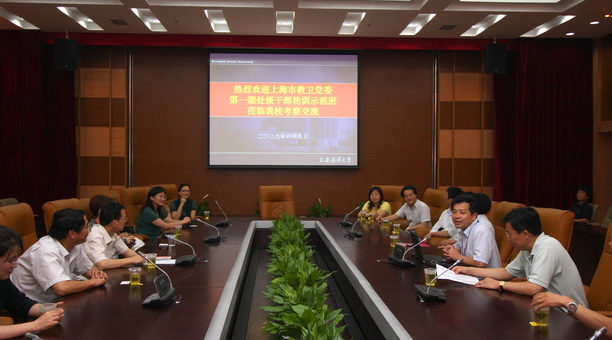 6月9日下午,上海市教卫党委系统第一期处级干部轮训示范班学员一行20多人来我校考察交流。校党委副书记吴嘉敏,党委组织部部长汪之和,资产经营公司经理、示范班班长周建,校办公室副主任游录泉等在图文信息中心102与示范班学员进行了座谈。