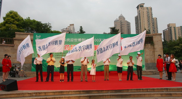 在开场歌舞《圆梦2010》的精彩演出后,由我校党委副书记、副校长黄晞建教授上台致词。简介的致辞中黄晞健教授表达了对上海食品药品监督管理局以及各个企业对食品药品安全所做的贡献,并热切期盼活动的圆满成功。随后,上海市食品药品监督管理局工作人员代表,小学生代表,大学生代表分别宣读了倡议书,并由市教委副秘书处长杨奇伟、市文明办活动指导处处长曾崇信、街道办事处主任 姜伟成、闸北区文化局局长陈列为世博志愿者代表启动授旗仪式。