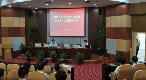 吴嘉敏副书记的动员报告结合文件内容和要求,布置了我校继续开展“讲党性、重品行、做表率”主题教育活动的任务,在开展“主题党课、警示、革命传统和先进典型示范”四项教育活动中,安排开展校、院两个层面的教育活动。尤其在“忠诚、敬业、道德、廉洁”的专题教育活动中既要帮助党员干部切实提高对开展主题教育活动重要性的认识,又要注重总结和宣传身边的优秀党员干部和优秀教师,各学院党委和机关党委在本单位宣传的基础上向学校推荐1-2名,学校评选后集中宣传。吴书记对整个活动提出三点要求,一是要把主题教育活动与学习实践科学发展观活动结合起来。二是主题教育活动要以推动学校科学发展和解决突出问题为重点。三是要把主题教育活动作为党建工作来抓,做到扎实有效。 与会同志观看了市纪委制作的教育片《唱支山歌给党听》,学习和领悟了上海市优秀共产党员朱践耳的优秀事迹。警示教育片《贪欲之害(三)蛀虫》揭示了原上海华谊集团副总裁范宪走上贪腐之路的犯罪经历和思想演变过程,这部警示教育的生动教材给观看者留下不少教育和启示。