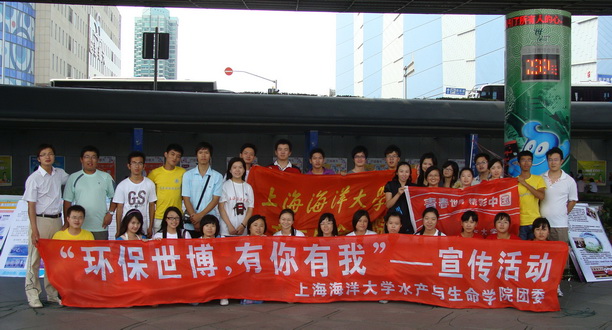 2009年9月4日,上海海洋大学水产与生命学院社会实践团在杨浦区五角场举办了一场名为“环保世博,有你有我”的宣传活动。本次活动,旨在宣传环保知识、提倡节能减排,将“参与世博、服务世博”的精神宗旨传递给广大市民,展现学院学生自主完成环保调研工作的能力及积极参与社会实践的成果,并传达其宣传世博、服务世博的精神理念。