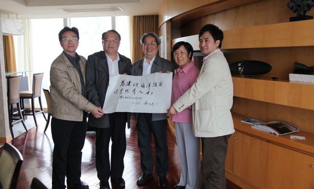 座谈最后,陈明义衷心地希望学校发展能早日再上新台阶,并欣然为母校的百年校庆题词:为建设海洋强国培育优秀人才!