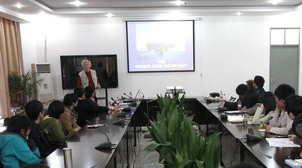 2013年4月13日,海洋科学学院迎来了一位重量级嘉宾唐·沃尔什(Don Walsh),并为研究生们做名为“THE EXPLORATION OF INNER SPACE 50 YEARS LATER”的专题报告。