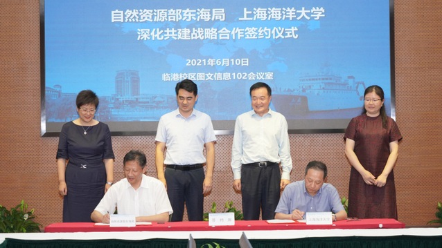 6月10日下午,自然资源部东海局与上海海洋大学举行深化共建战略合作协议签约仪式。自然资源部东海局分党组书记、局长黄海波,上海海洋大学党委书记王宏舟和校长万荣出席仪式并致辞,上海海洋大学党委副书记、纪委书记潘燕主持签约仪式,自然资源部东海局党组成员、纪检组长赵俊杰,上海海洋大学副校长江敏出席签约仪式。