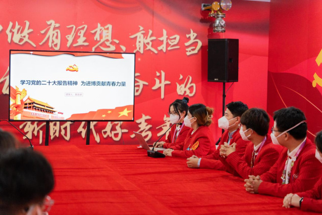 陈孜卓是196名“小叶子”体验官中的一员。上岗前,她作为高校培训联络员,牵头组建了海大进博会“讲师团”,录制二年级“小叶子”传授经验的视频,给全体海大志愿者下发培训手册,督促同学们按时完成线上培训课程。上岗期间,陈孜卓作为第五届中国国际进口博览会上海海洋大学志愿者临时党支部书记,日常负责统计酒店用餐情况,根据不同上岗时间,确定每日酒店订餐数量;负责每日“进博日记”等相关进博会系列活动推送的组织撰写、素材收集;开展“生逢新时代,奉献正当时——学习贯彻党的二十大精神”主题分享会,带领海大志愿者中的党员同志们重温入党誓词。