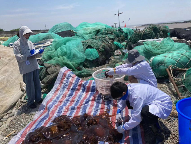 自2017年开始,我国海洋渔业管理走出了重要一步——试点实施海洋渔业捕捞限额制度。经反复研究论证,上海市于2019年启动海蜇限额捕捞专项试点,委托我校参与试点方案研究与论证,以及专项管理实施过程中的渔获物上岸监测统计、渔获物样本生物学测定、数据分析与报告等工作,并安排人员作为科学观察员随船出海。今年我校连续第5年参与上海市海洋伏休期间的专项限额捕捞管理工作。目前,叶旭昌老师正在海上进行生产现场科学观察。8月1日至9月16日,这支团队还将继续参与上海市另一新的捕捞限额管理专项试点——桁杆拖网渔业的的限额捕捞管理工作。