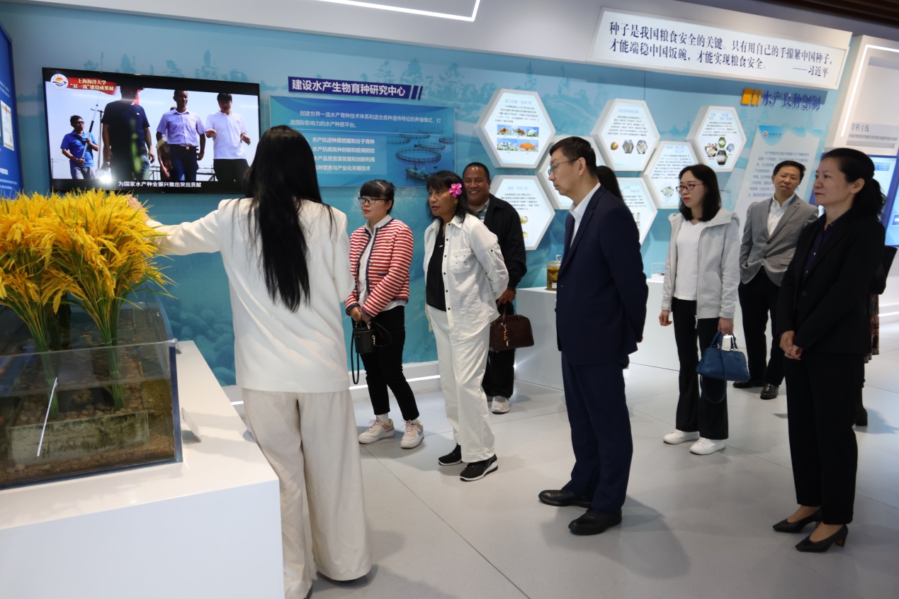 里特部长首先参观了学校“双一流”建设成果展,全面了解学校发展沿革、学科定位及“一流学科”建设成效与未来愿景。随后,参观远洋渔业科技馆,了解我国远洋渔业发展历程及产学研成果。