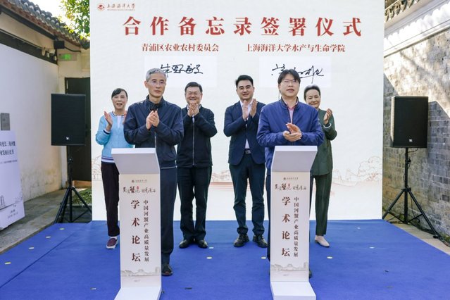 活动上,王平、王宏舟、倪向军等见证青浦区农业农村委员会、上海海洋大学水产与生命学院共同签署合作备忘录。在合作框架下,上海海洋大学聚焦河蟹等水产养殖品种的良种选育、高质量苗种培育、绿色生态养殖示范、品牌建设以及人才培养等方面,与青浦区全面深化合作,构建全方位、宽领域、多层次的区校战略合作关系。