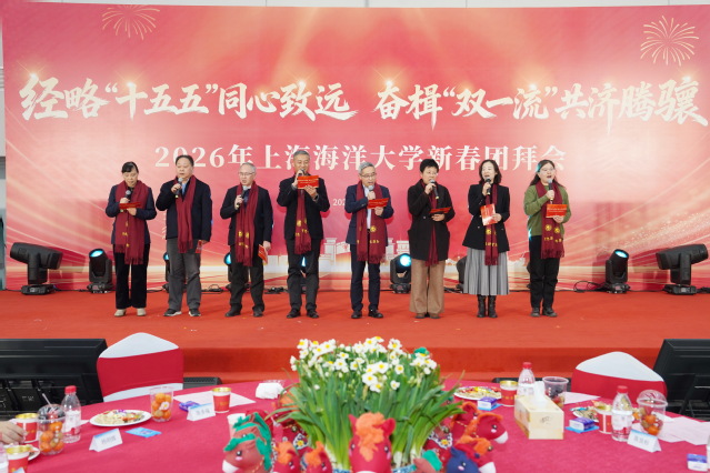 “骏马蹄开锦绣路,扬帆奋进新征程”。1月27日下午,上海海洋大学2026年新春团拜会在新落成的水生生物科研楼6楼大厅举行。校长胡炜发表新春致辞,校党委副书记潘燕主持团拜会。