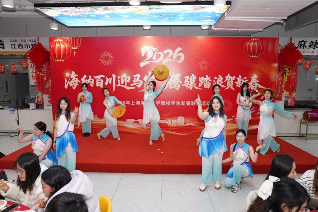 华灯初上,暖意融融。1月27日晚,上海海洋大学第二餐厅二楼张灯结彩,处处洋溢着喜庆的节日氛围。“海纳百川迎马岁腾骧踏浪贺新春”2026年上海海洋大学留校学生新春联谊活动在此温馨启幕。校长胡炜,党委副书记、副校长夏雅敏,副校长倪卫杰,副校长江敏及留校师生代表400余人齐聚一堂,共同开启这场新春盛宴。
