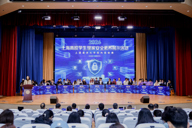 4月21日下午,2026年上海高校大学生国家安全素养展示活动上海海洋大学校内选拔赛在大学生活动中心报告厅顺利举行。本次活动旨在深入贯彻落实总体国家安全观,进一步提升大学生国家安全意识与综合素养,营造“人人讲安全、事事为安全、时时想安全”的校园文化氛围。